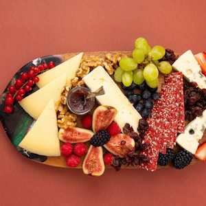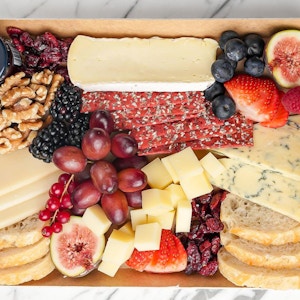 Los Carpinteros Manchego Dop Semicurado, Brie De Meaux Truffles Entier, Roquefort Aop 1/2 Pain, Grapes, Crackers, Quince, Bread (2 Slices) Note: Please note that the product does not come with the wooden board pictured. “Fruits and nuts on the platter are subject to seasonal availability and may vary accordingly.”