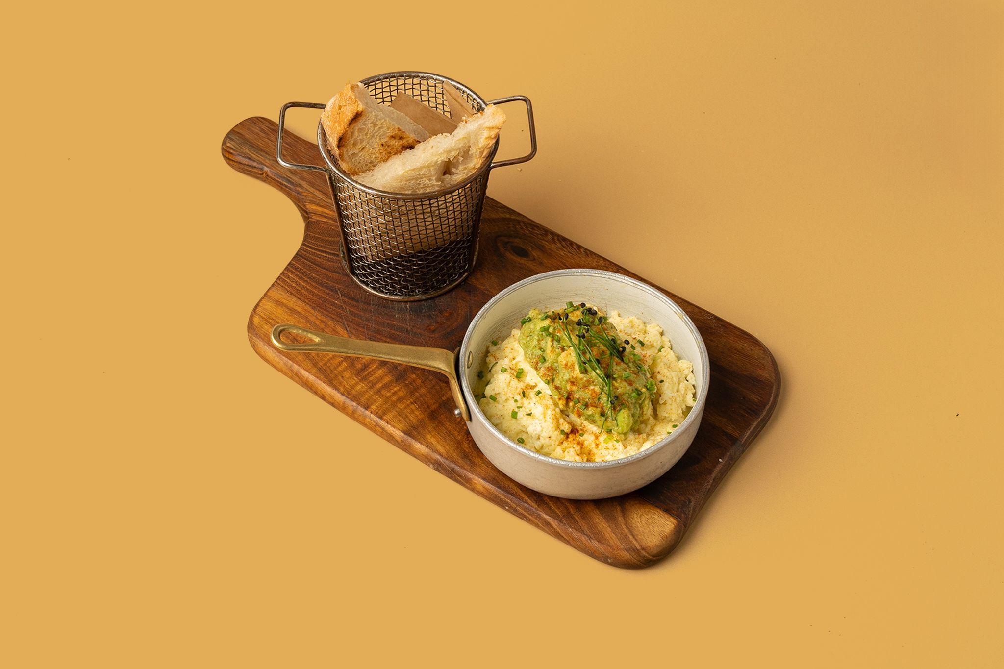 A tribute to traditional Classic Scrambled Eggs with fresh farm eggs on sour dough bread. | بيض مخفوق كلاسيكي على خبز العجين الحامض.